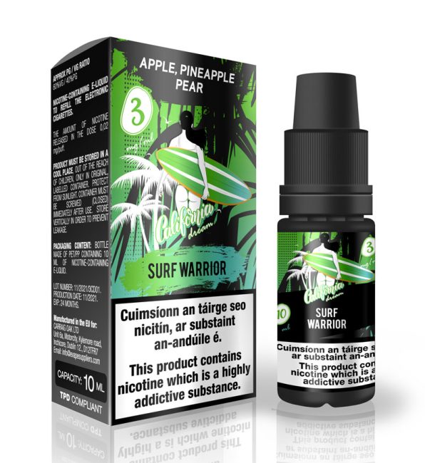 Surf Warrior E Liquid by California Dream. No point fighting this one, just give in to its magnificent mix of Apple, tasty Pineapple & juicy Pear.