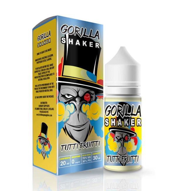 Tutti Fruitti E Liquid by Gorilla Shaker Wrap your taste buuds around this clever combination of Blueberry, ripe Blackcurrants, juicy Watermelon & Dragon Fruit